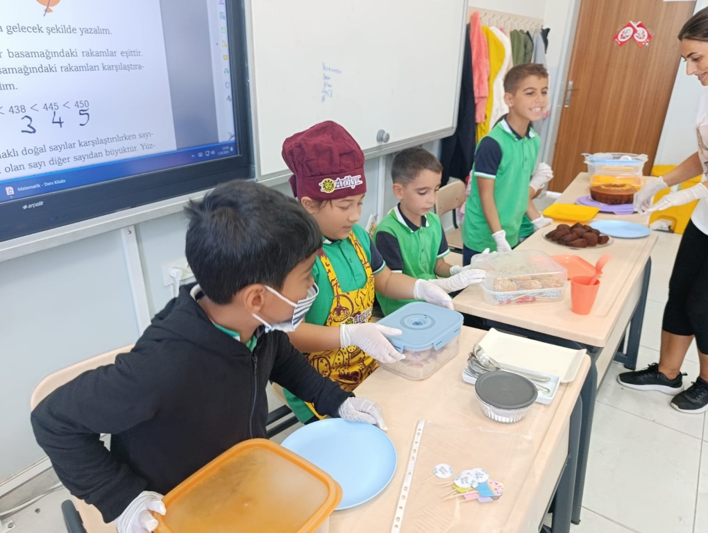 Okulumuzda 01/10/2025 günü 3/A sınıfı öğrencileri arasında MasterChef etkinliği düzenlendi. Bilinçli tüketim, israfı önleme, temiz gıda,rekabet duygusunu geliştirme,paylaşma ve bende yapabiliyorum duygusu kazandırma” temalı yemek yapma yarışmasına Şehit Yılmaz Kobak 3/A sınıfı öğrencilerinden 5’er kişiden oluşan 4 grup katıldı. Sadece kalem tutan, ders çalışan değil evdeki malzemeleri israf etmeden yemek yapabilmeyi, kendilerini hayata hazırlamayı da amaç edinenildi. Yarışmayı Okulumuzun Sınıf öğretmeni F.Ferit MAMUK ve sınıf velilerimiz organize ettiler. Seçici kurul üyeliğini öğrencierimizden Batın Taha YAYA ve Ateş ŞARLI yaptılar. Öğrencilerimiz, öğretmen ve velileri kontrolünde kek ve truf tatlısı yaptılar.