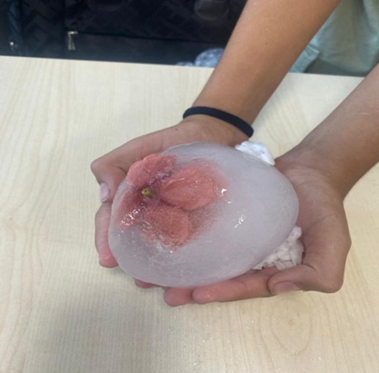 Sınıfa getirilen balon ,yaprak ,çiçek ,cansız böcek ve arı gibi maddeler etkinliğimizin ana malzemeleri oldu. Öğrencilerimiz önce balonların içine getirdikleri çiçek ,böcek , yaprak gibi maddelerden birini koydular.Balonları su ile doldurup ağızlarını düğümlediler. Düğümlenen balonları okulumuzun buzluğuna attılar. Ertesi gün Fen Bilimleri dersinde balonlarımızı kesip içindeki buzu çıkarınca vebuzdaki fosilleri görünce çocukların mutluluğu görülmeye değerdi.Çocuklar yapılan bu etkinlik ile fosillerin oluşumu ile ilgili konuyu yaparak ve yaşayarak ve eğlenerek kavradılar.